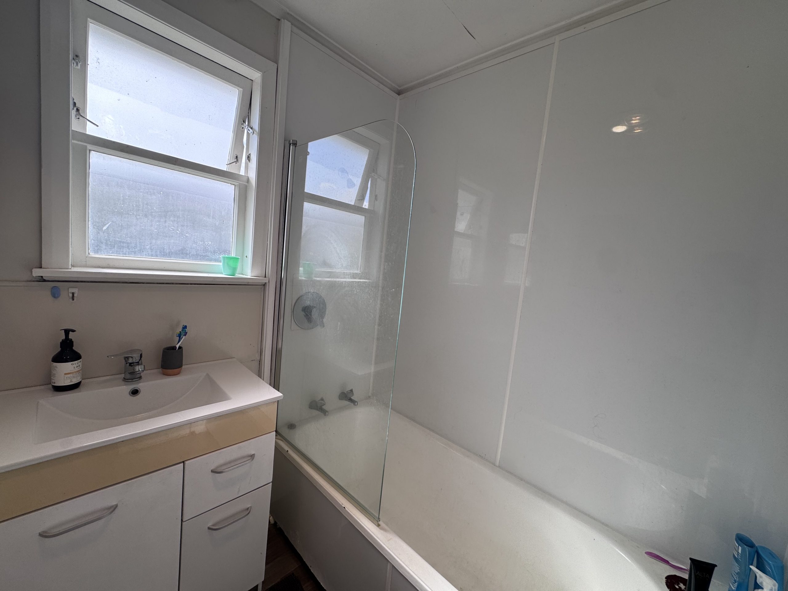 * Bath over shower. Separate toilet. Separate laundry